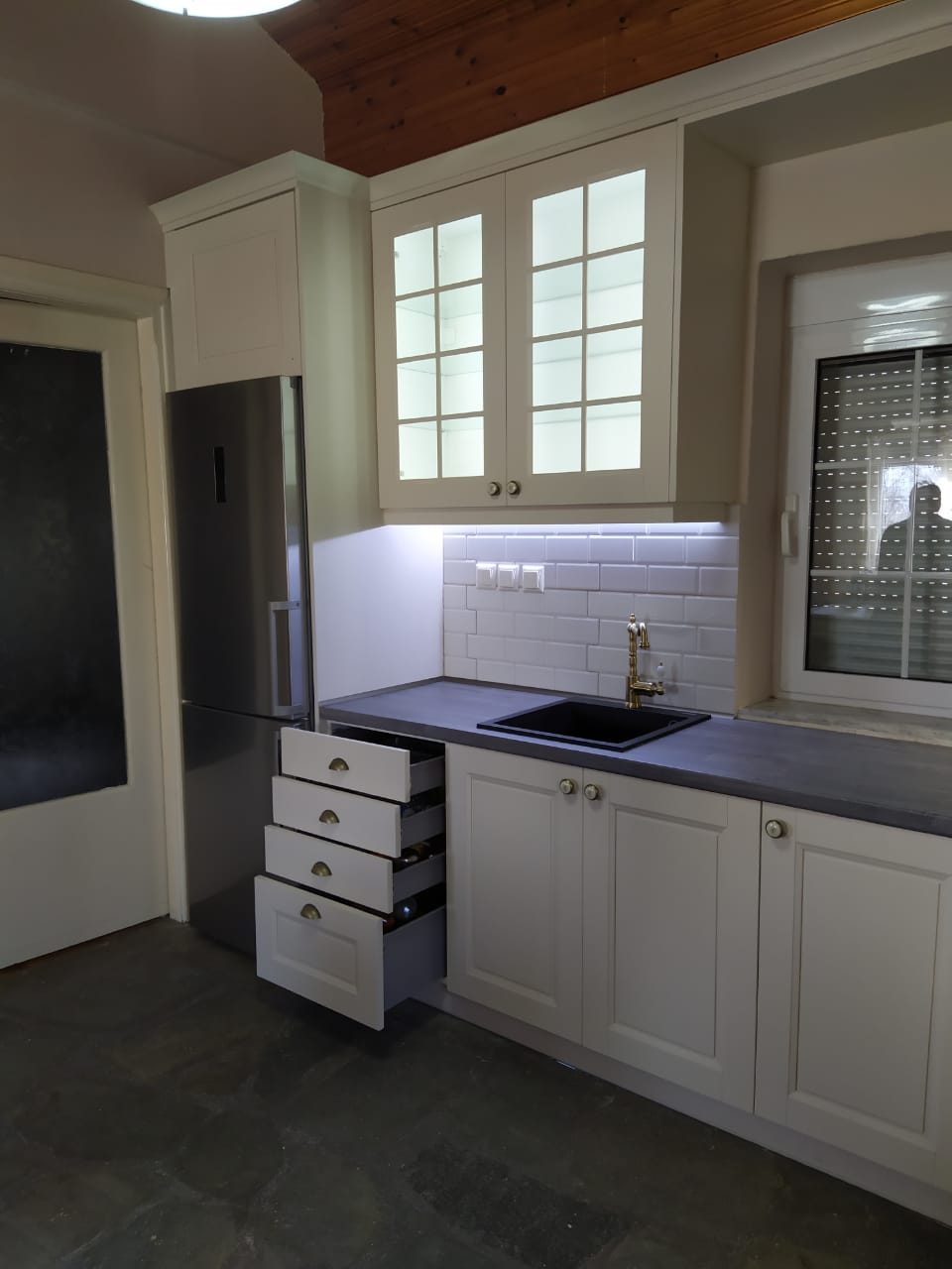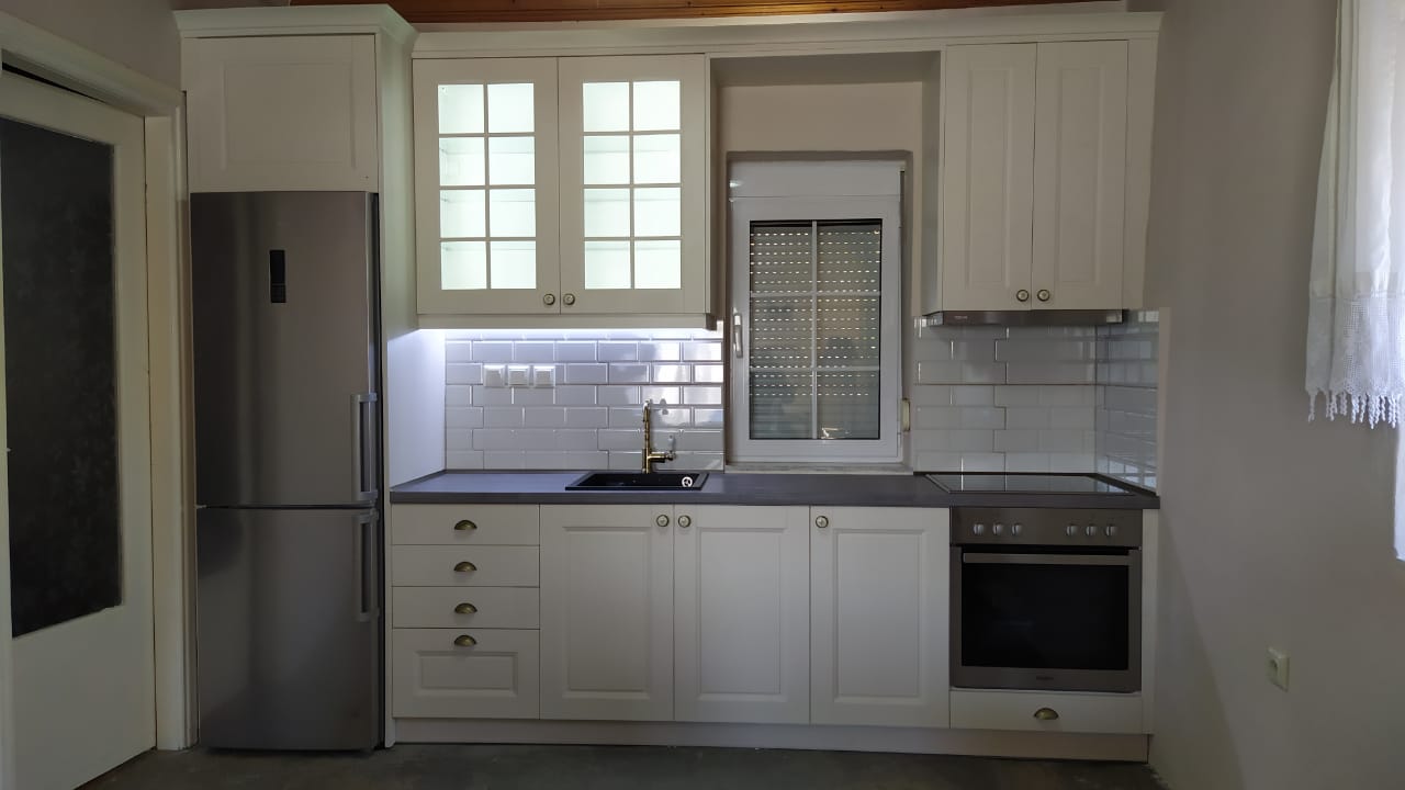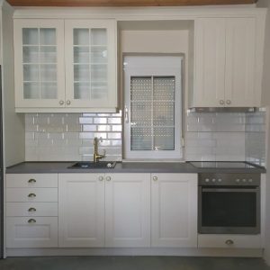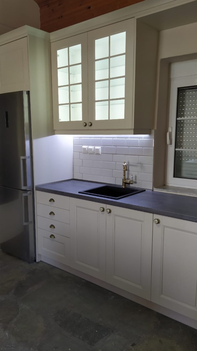 ΚΟΥΖΙΝΑ ΛΕΥΚΗ ΜΕ ΞΥΛΙΝΟ ΠΑΓΚΟ