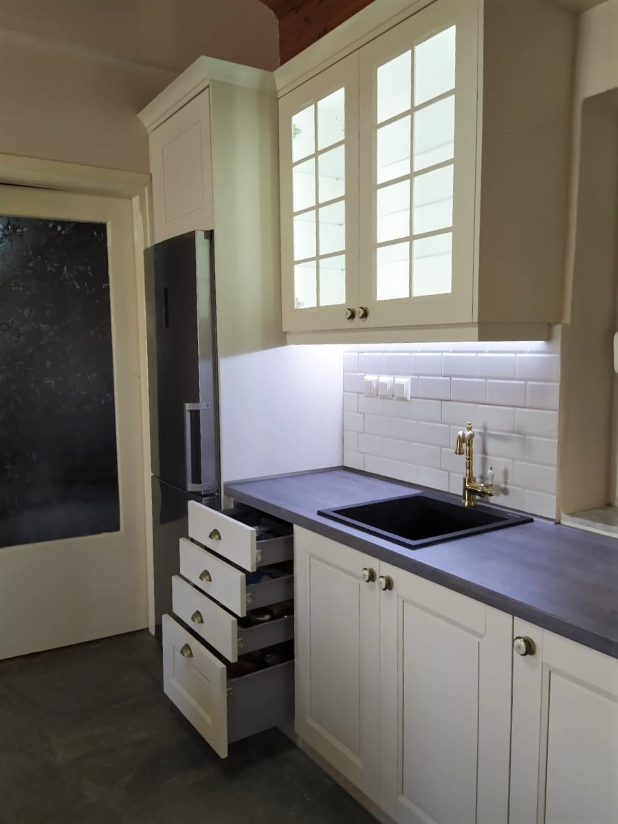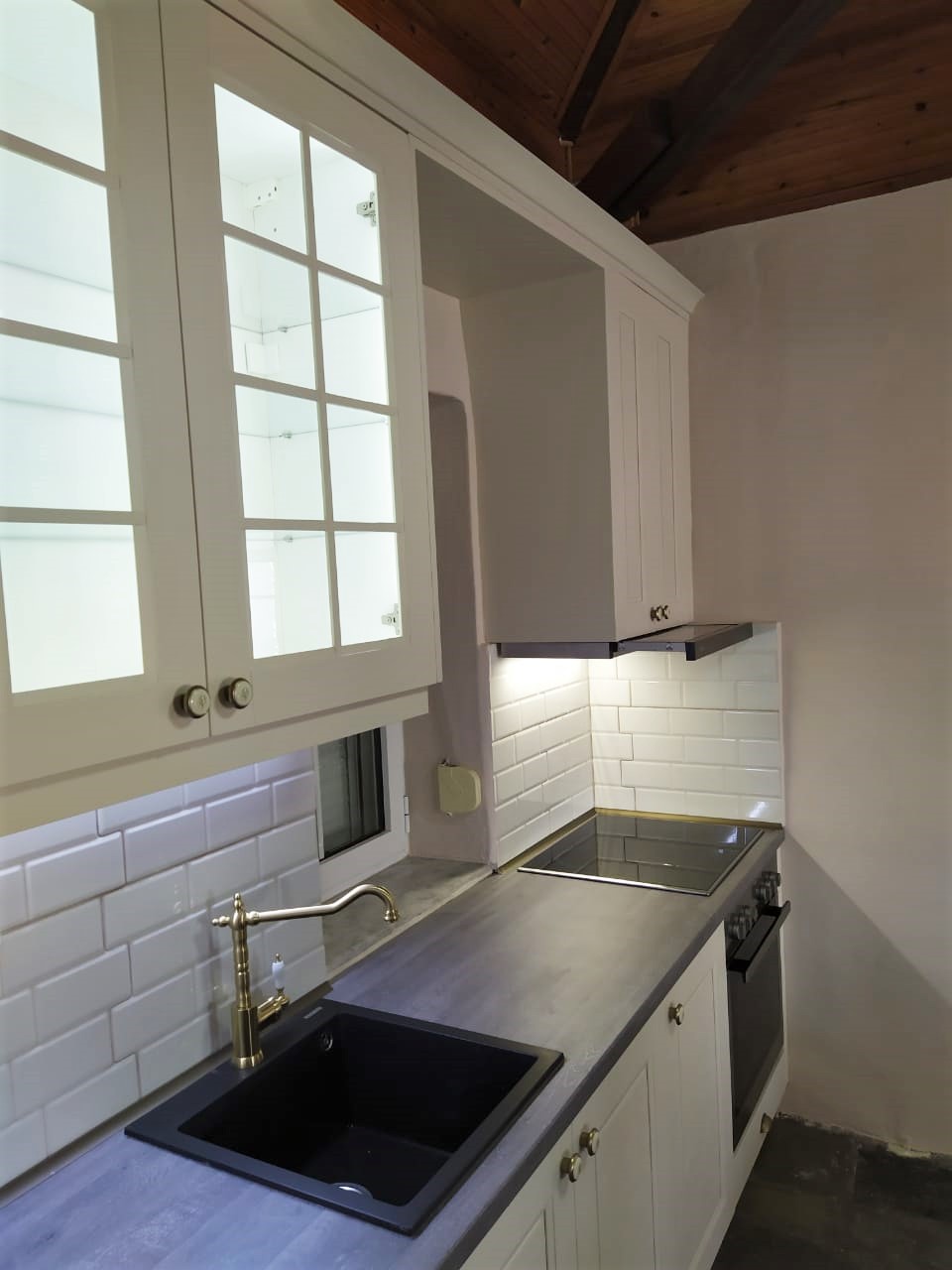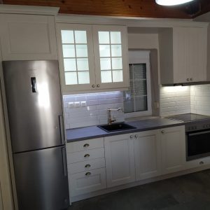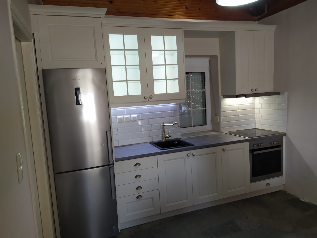 ΚΟΥΖΙΝΑ ΛΕΥΚΗ ΜΕ ΞΥΛΙΝΟ ΠΑΓΚΟ